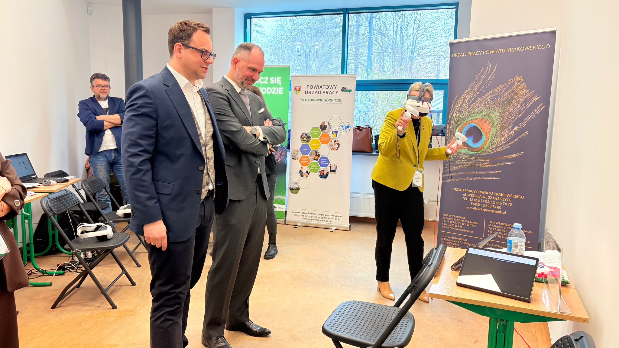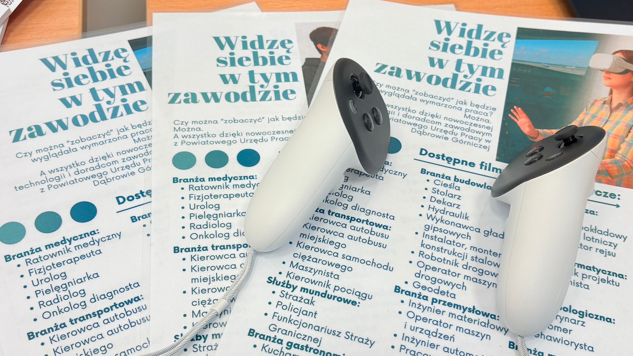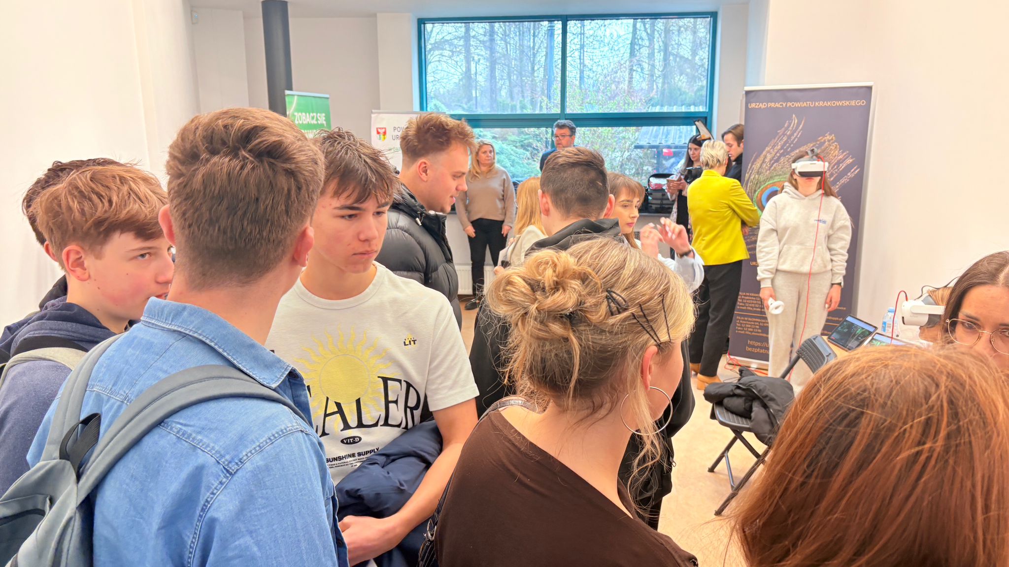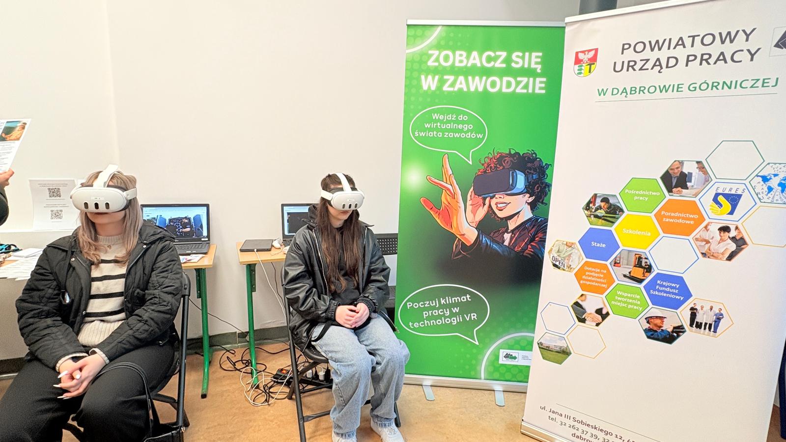 Ogromną atrakcją były gogle VR, które dzięki naszej współpracy z zaprzyjaźnionymi urzędami – Powiatowym Urzędem Pracy w Dąbrowie Górniczej oraz Urzędem Pracy Powiatu Krakowskiego – pozwoliły uczestnikom przenieść się w wirtualny świat zawodów i sprawdzić, w jakich rolach widzą swoją przyszłość.