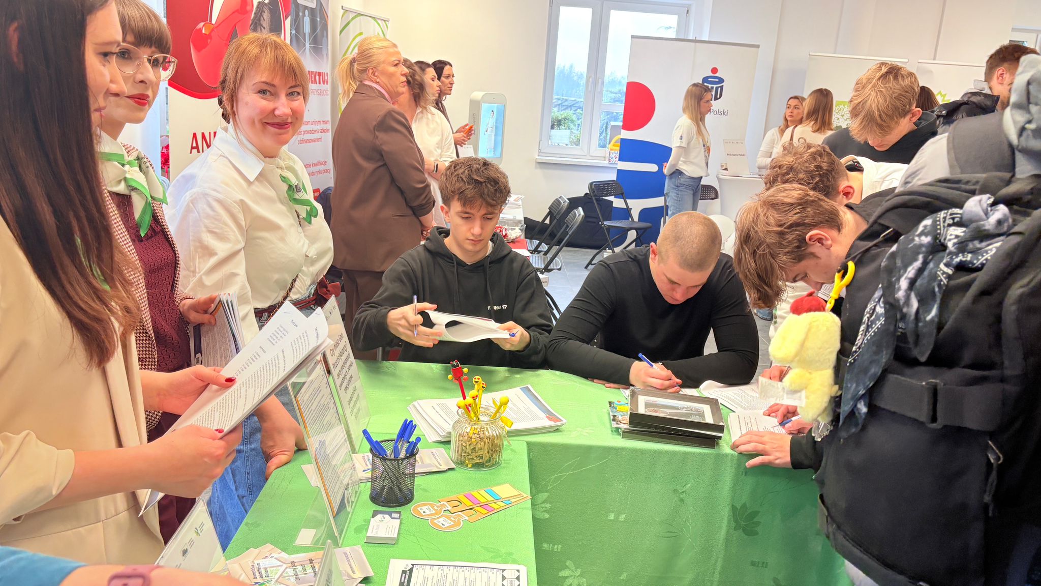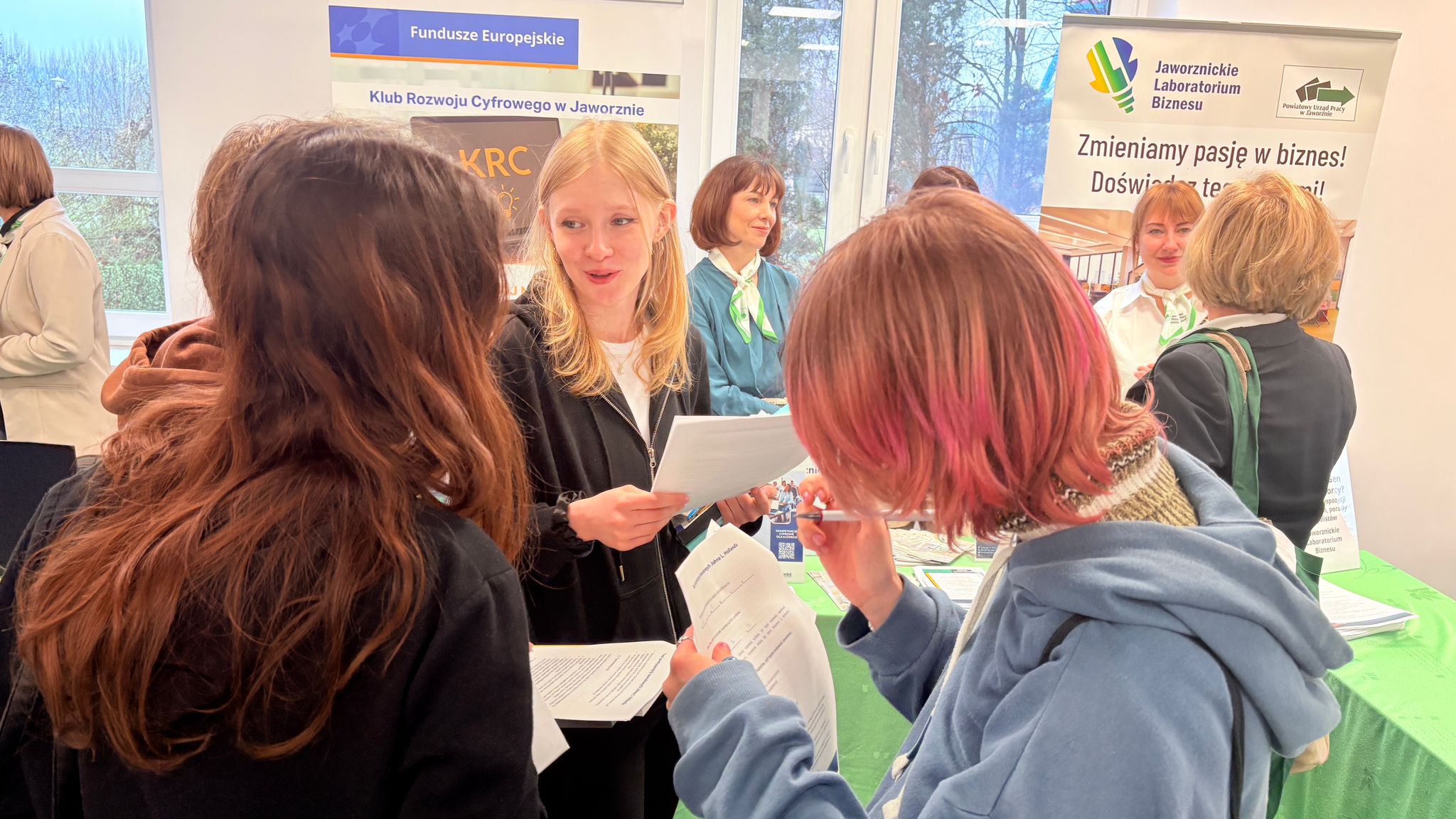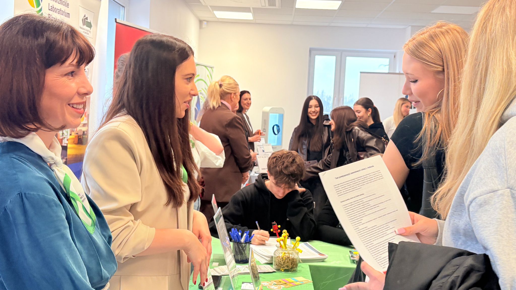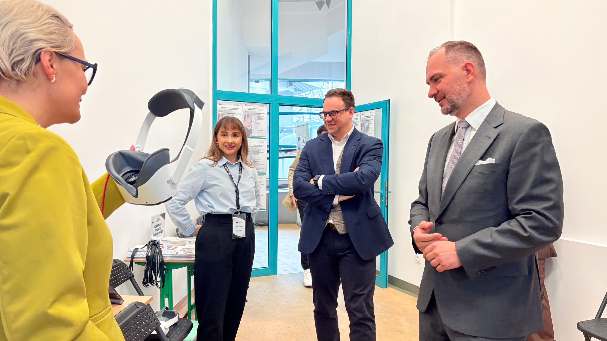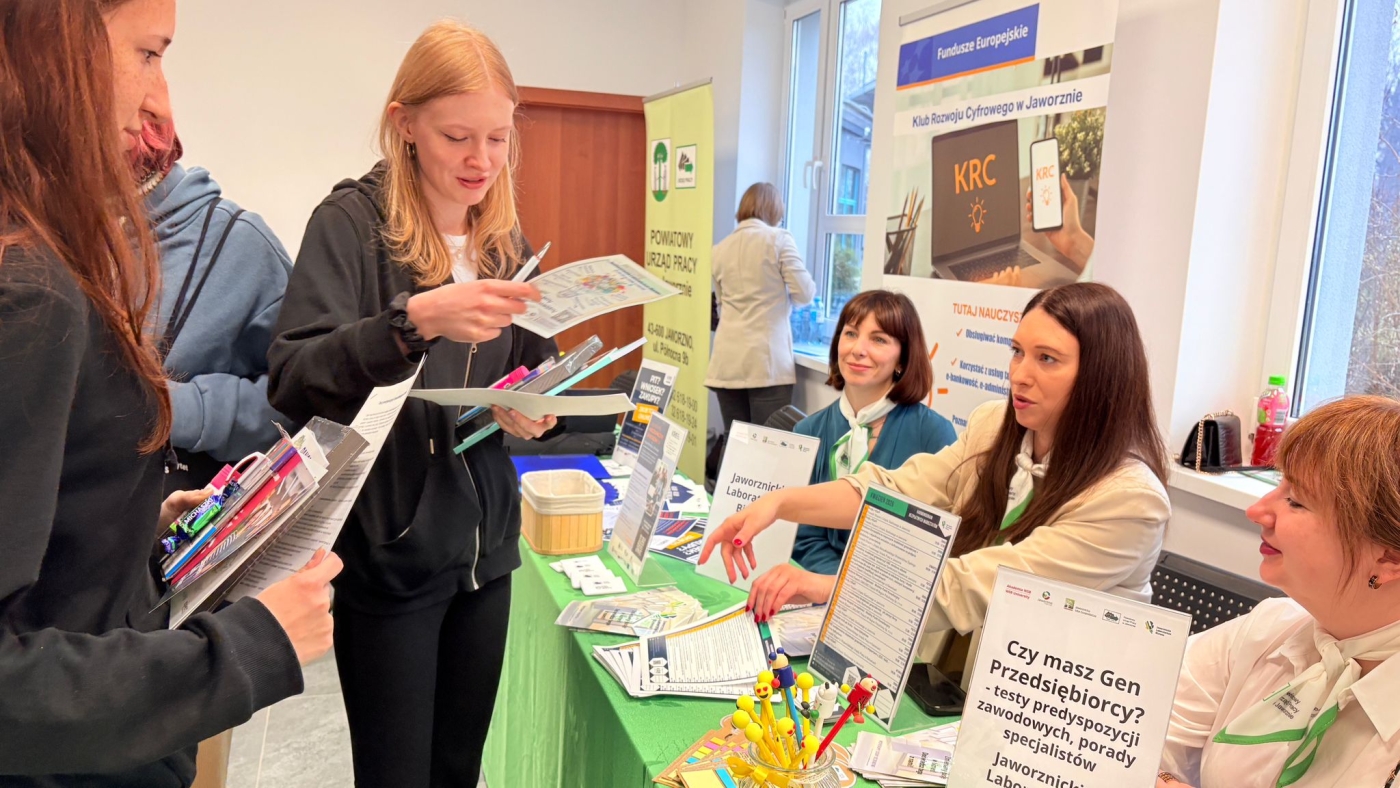 Ogromną atrakcją były gogle VR, które dzięki naszej współpracy z zaprzyjaźnionymi urzędami – Powiatowym Urzędem Pracy w Dąbrowie Górniczej oraz Urzędem Pracy Powiatu Krakowskiego – pozwoliły uczestnikom przenieść się w wirtualny świat zawodów i sprawdzić, w jakich rolach widzą swoją przyszłość.